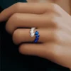 The deep sapphire and moissanite’s brilliant fire create a striking contrast, offering unparalleled color and sparkle that elevate your style with every glance. Crafted with a sterling silver band featuring hypoallergenic craftsmanship, it ensures durable comfort and tarnish resistance for all-day wear. The innovative twisted design highlights the gems’ brilliance, providing a comfortable, flattering fit that stands out in any setting. Eco-friendly gem sourcing blends sustainability with luxury, aligning with your values and boosting confidence. Luxurious gift-ready packaging makes it a perfect presentation or cherished keepsake.